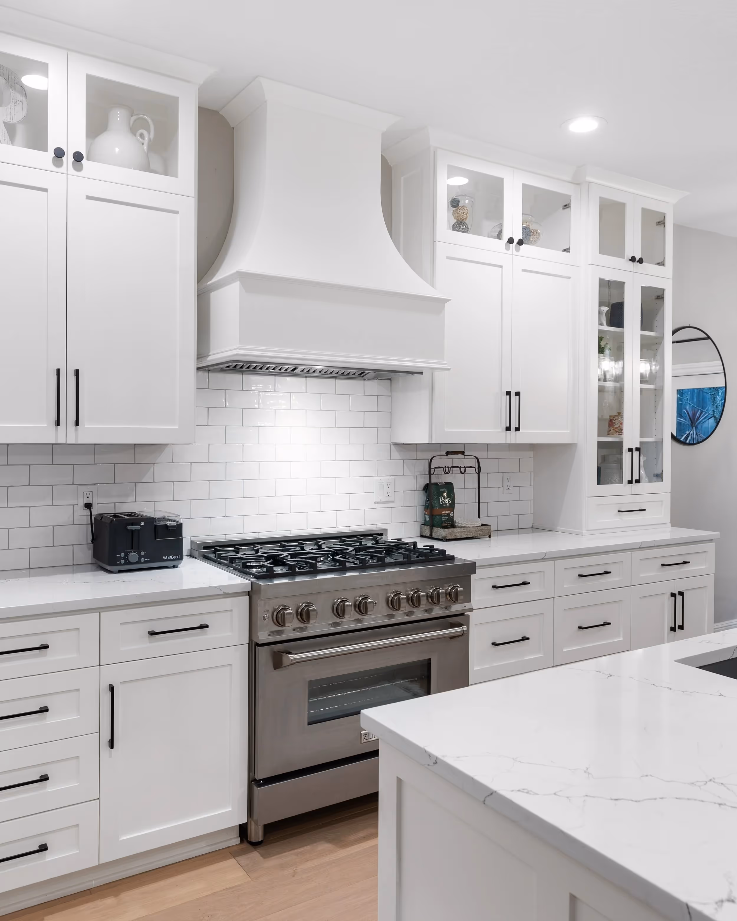 After a devastating fire, this Tigard home was reborn with a thoughtful blend of restoration and renovation. Working closely with the homeowners and insurance, every element was crafted to not only replace but also upgrade. The kitchen now features custom farmhouse cabinetry and pristine quartz countertops, complemented by a grand hood vent that becomes a focal point of the space. In the living room, a refreshed fireplace surround adds warmth, while new wood flooring throughout the home elevates the overall feel. To fully restore indoor air quality, the HVAC system underwent a comprehensive cleaning to eliminate smoke remnants, ensuring a fresh start in a beautifully renewed environment.