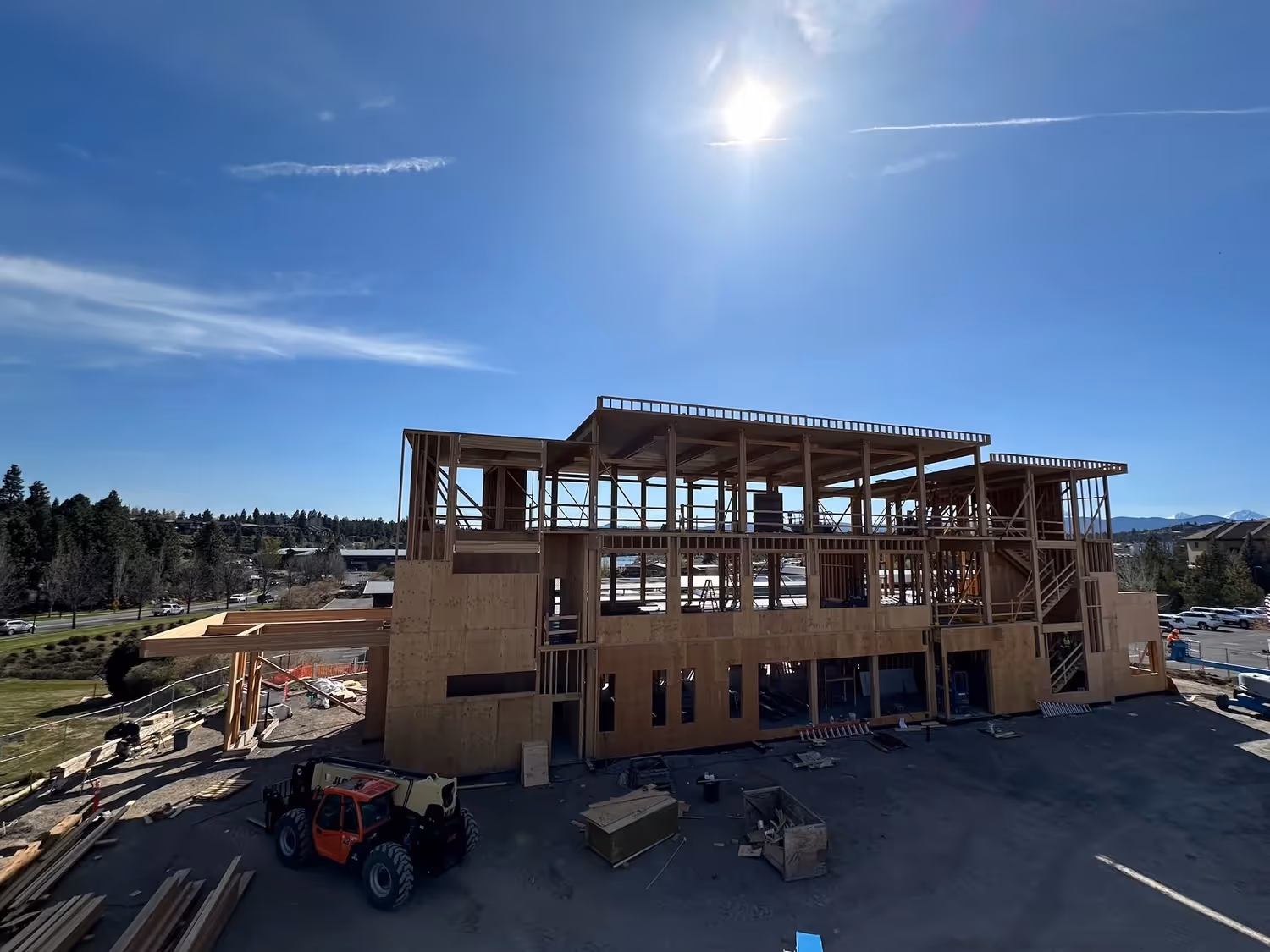 This impressive three-story, 15,945-square-foot building sits in the bustling Old Mill District of Bend, Oregon. Brothers Building was brought in by Carpentry Plus to handle the mass timber installation for this project, a unique collaboration that required precise build sequencing. Working closely with the general contractor, Sunwest Builders, and NW Framing Systems, our team successfully completed the timber erection in just three weeks. The building’s standout feature is its striking mass timber stairwell, a testament to meticulous craftsmanship and coordination. We’re honored to have played a role in bringing this architectural vision to life alongside Steele Architects and our trusted project partners.