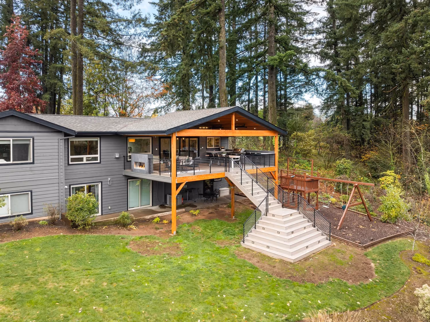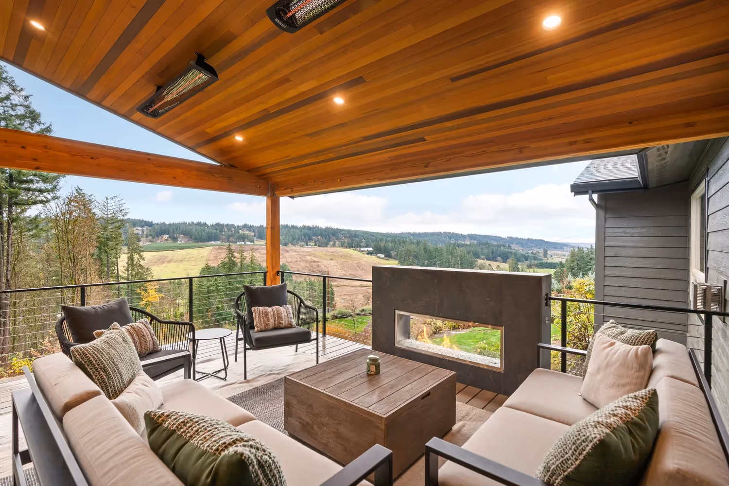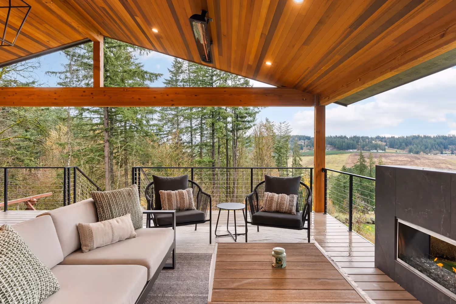 Under the serene canopy of Wilsonville’s towering trees, the Newland Rd. deck addition redefines outdoor living with elevated design and purpose. Featuring a rich cedar-lined tongue-and-groove ceiling, modern heating elements, and integrated lighting, this space becomes an inviting retreat in every season. The deck seamlessly blends form and function, including a built-in grill station, an expansive dining area, and a contemporary gas fireplace. Designed for both lively gatherings and quiet moments of reflection, it balances practical features with sophisticated style. Steel railings add a clean, modern edge while framing the natural beauty of the Pacific Northwest. This addition isn’t just about extending the home—it’s a testament to intentional craftsmanship that transforms outdoor spaces into timeless extensions of home life.